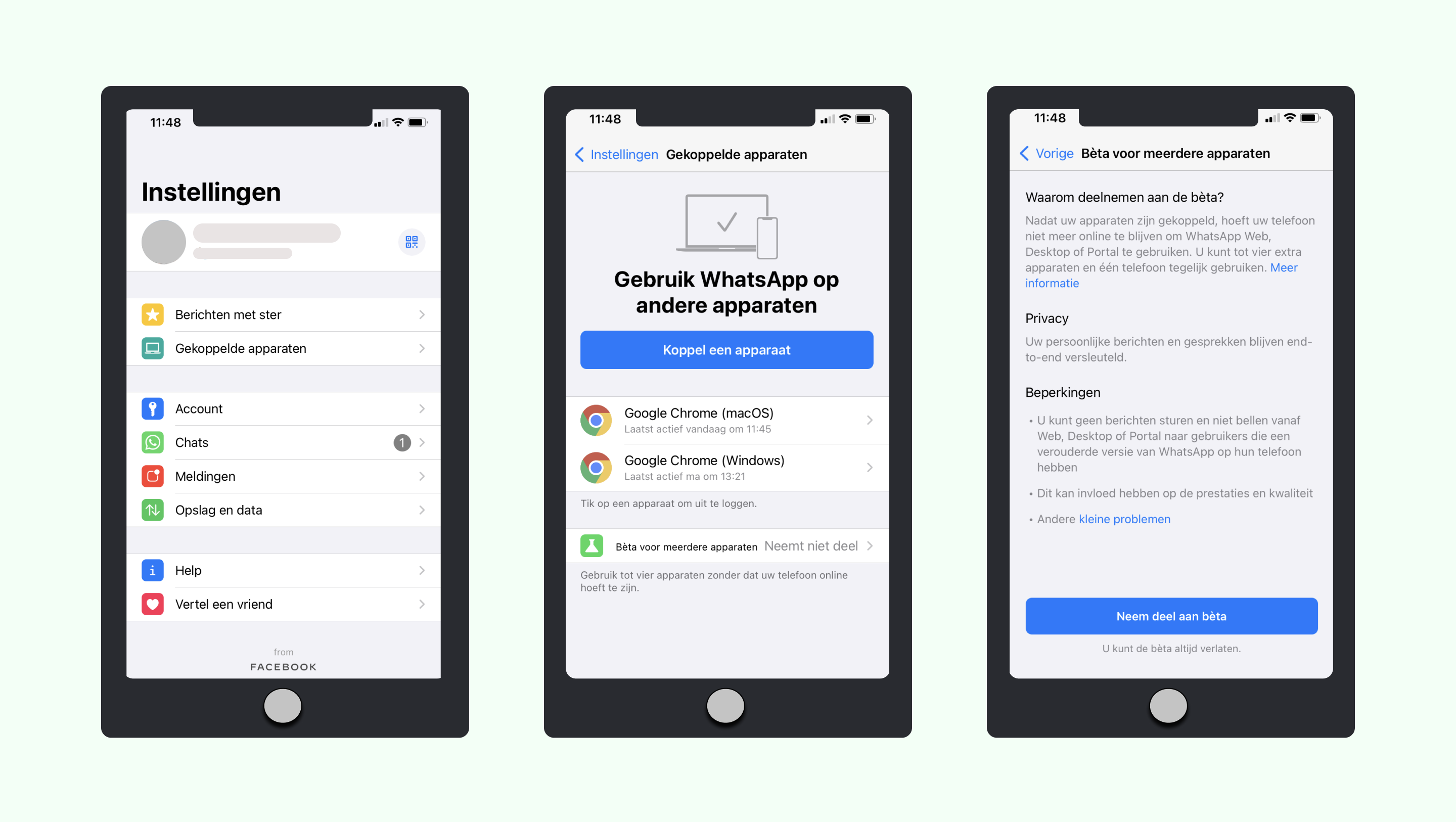 The situation before this update was as follows. Your mobile phone needed to have an internet connection when you wanted to use WhatsApp Web. The web version synchronized with the smartphone app, which was not possible without an internet connection. This meant that when the smartphone was not connected or turned off, WhatsApp Web did not work. WhatsApp on the computer was nothing more than a relay to and from the app on the phone. Moreover, a difficult situation had arisen for businesses. Many companies nowadays have WhatsApp as part of / an option within their customer service. Because in this situation only two people could respond via WhatsApp at the same time (1 on the phone, the other via WhatsApp Web), this limited many businesses.